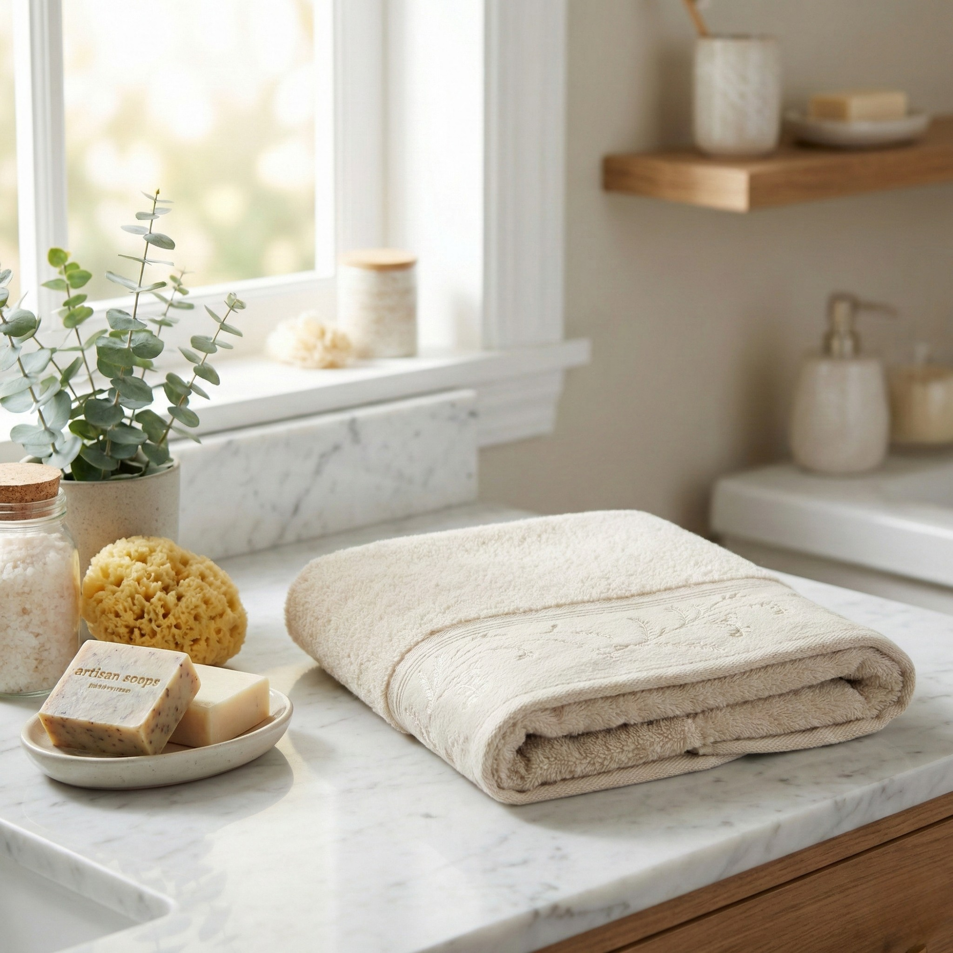 50×80 cm ölçüsüyle el ve yüz havlusu olarak idealdir, banyonuza zarif bir dokunuş katar.